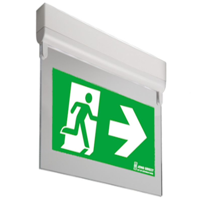 Met de DecaLED Opbouw Hang Noodverlichtingsarmatuur 3W kunt u vluchtwegen markeren middels een hangend pictogram, dat vanuit de opbouw behuizing wordt aangelicht met LED verlichting. Deze vluchtroute indicator is zowel tegen het plafond als tegen de wand te monteren. Het bordje kan hiervoor 90 graden naar beneden gekanteld worden.