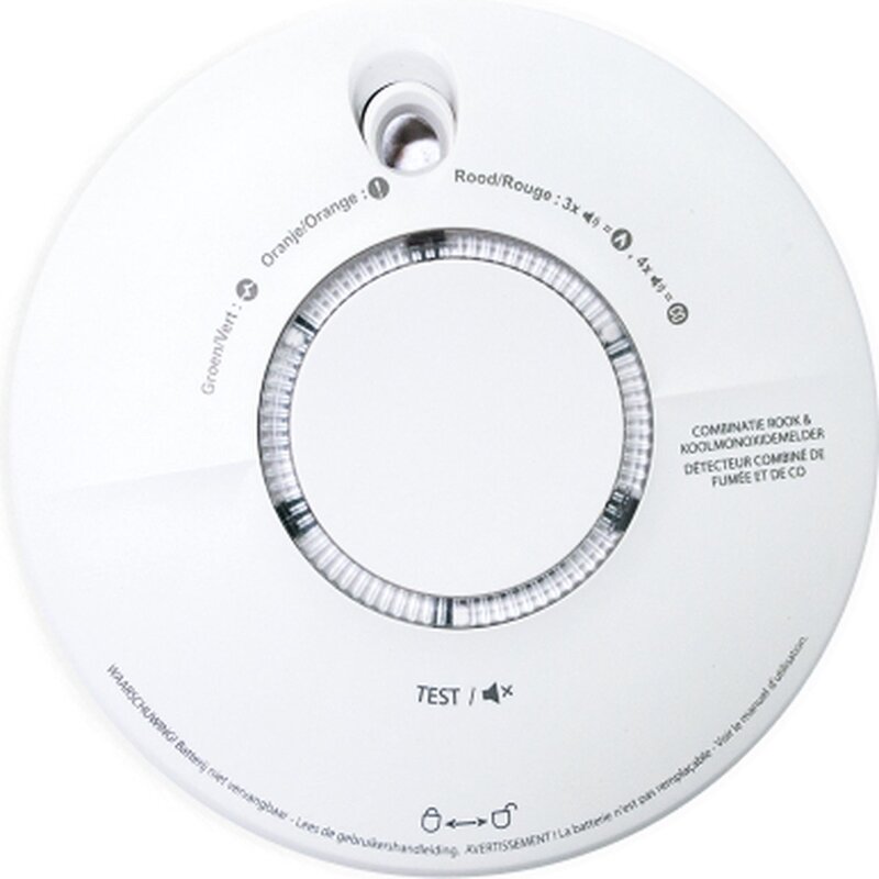 Een gecombineerde optische rook- en koolmonoxidemelder met een levensduur van 10 jaar.